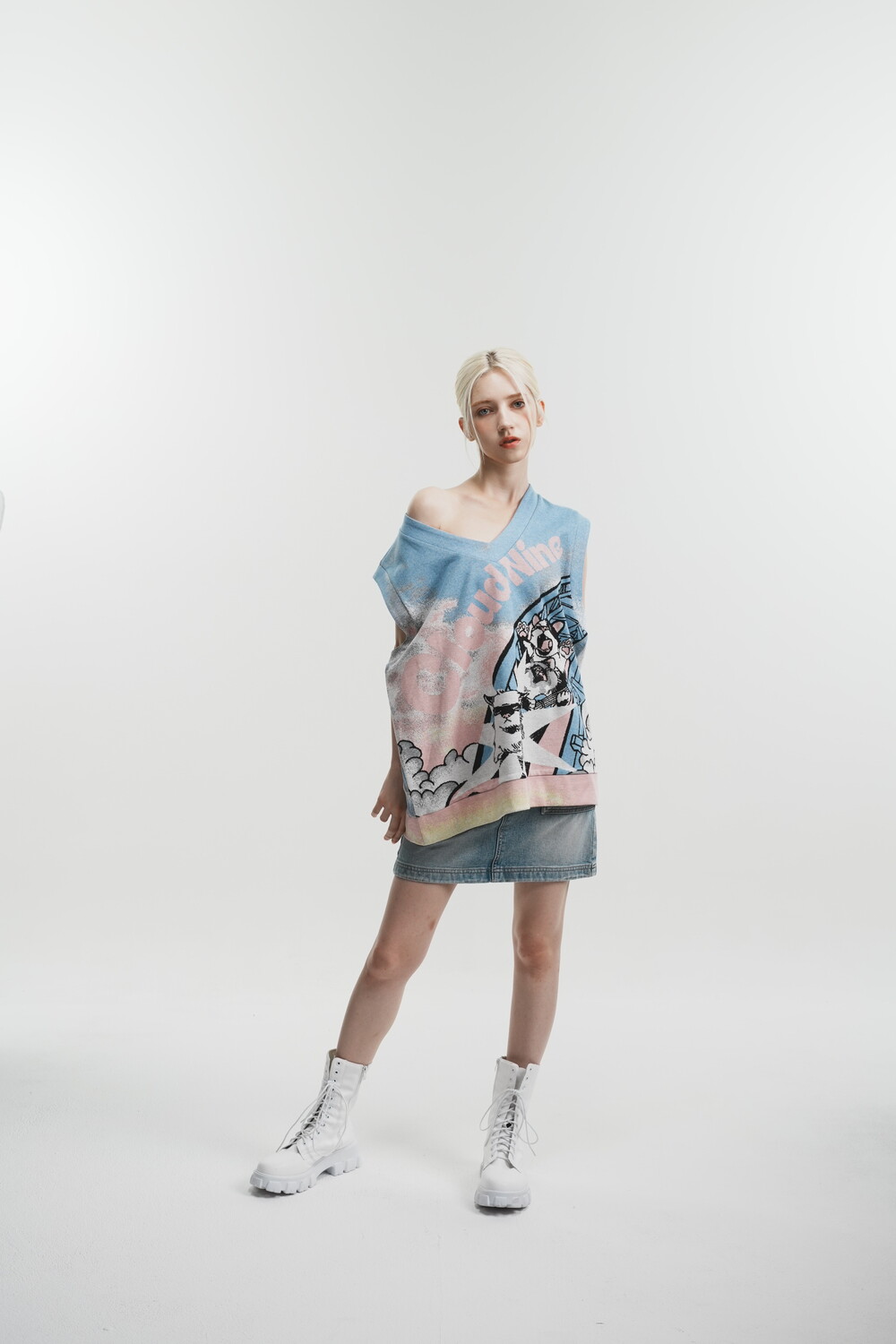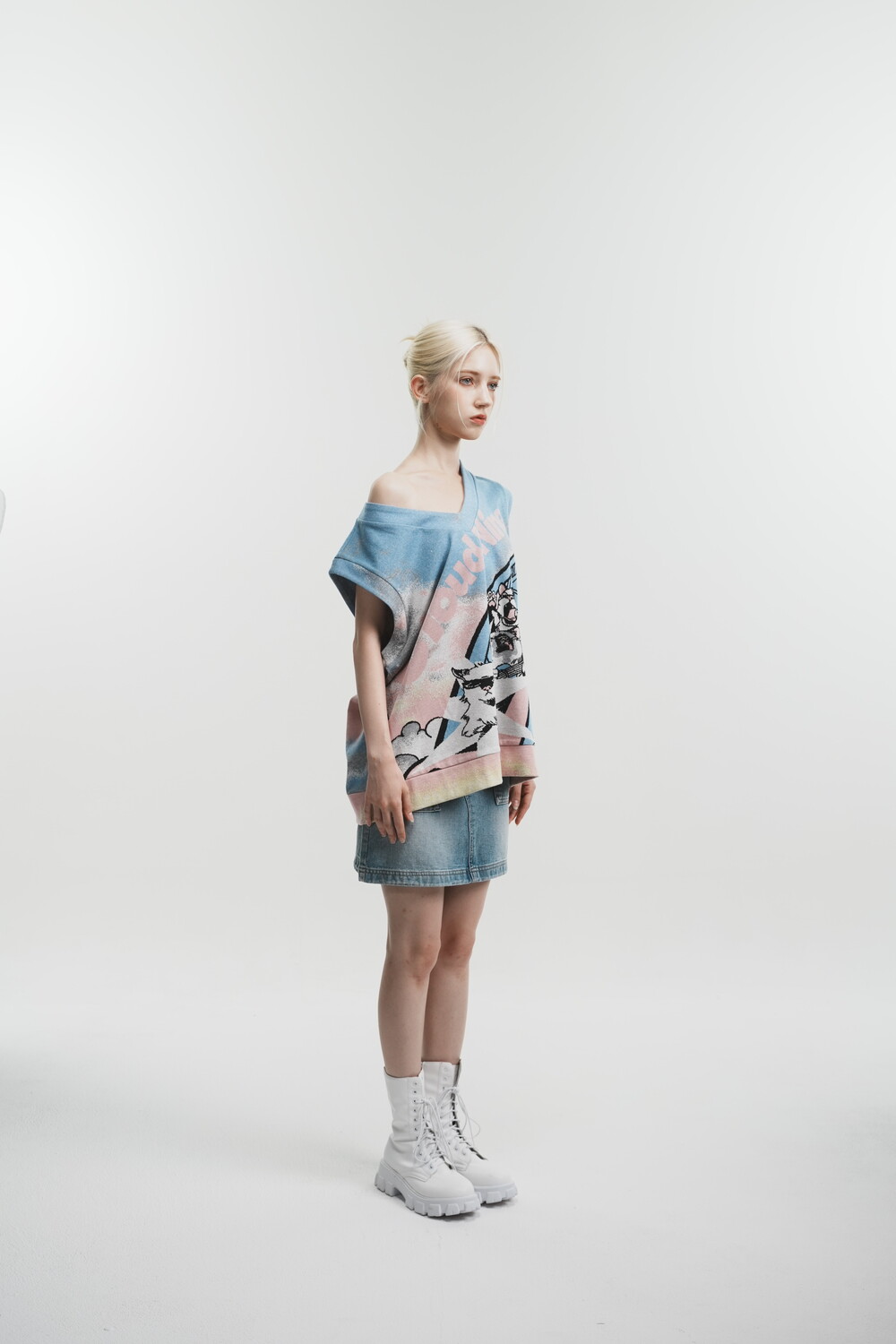 ONE SIZE : 총장 69 어깨 49 가슴단면 60 밑단면60