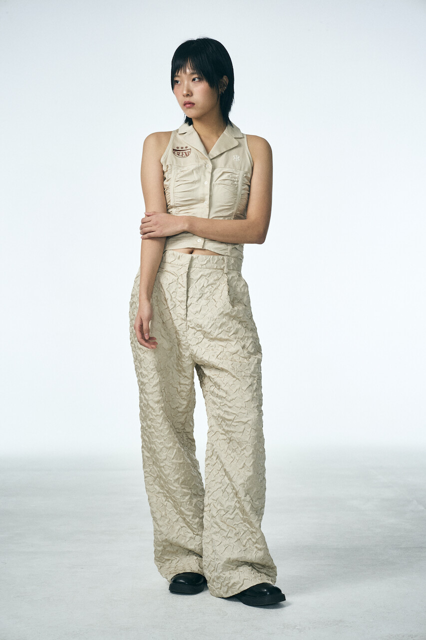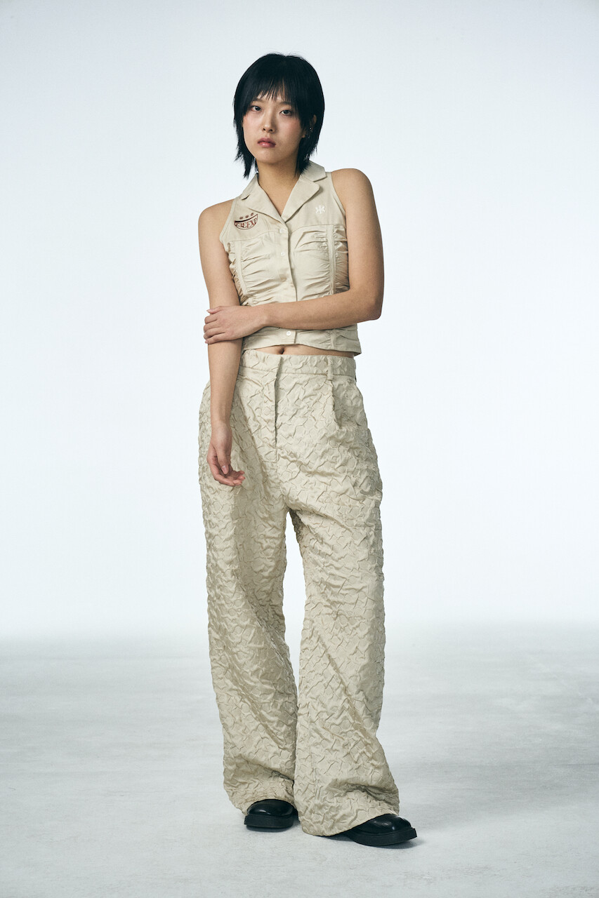 SHIRRING RAINDROP PANTS_BEIGE