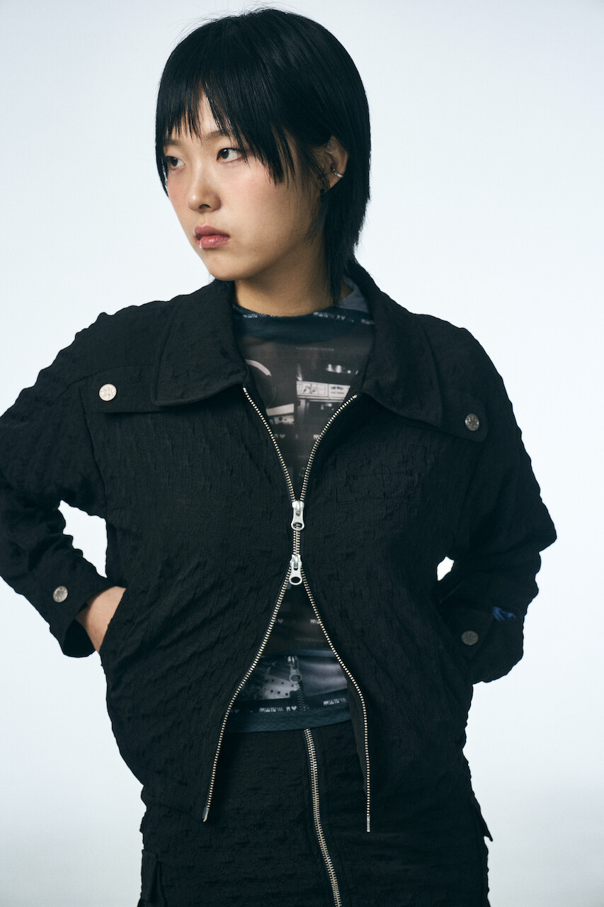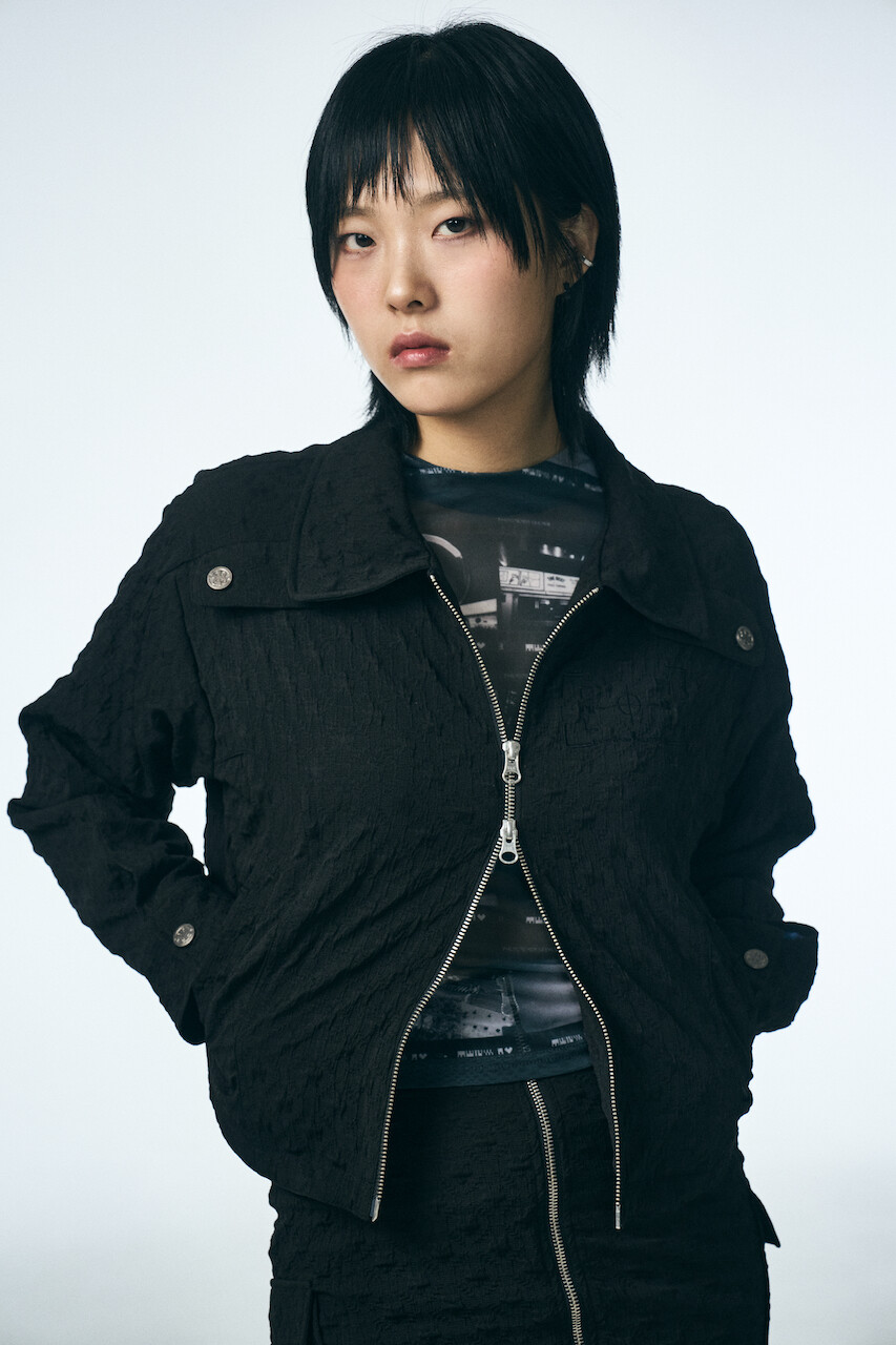 M SIZE : 총장 52 어깨 48 가슴단면 56 소매장 58