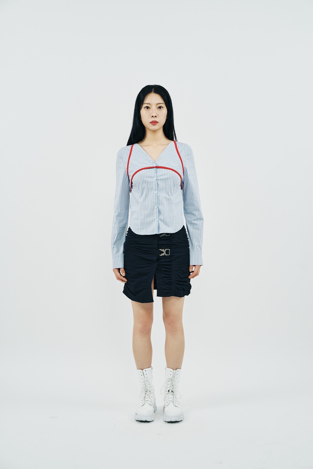 ⦁ 언발란스 기장 셔링 디테일