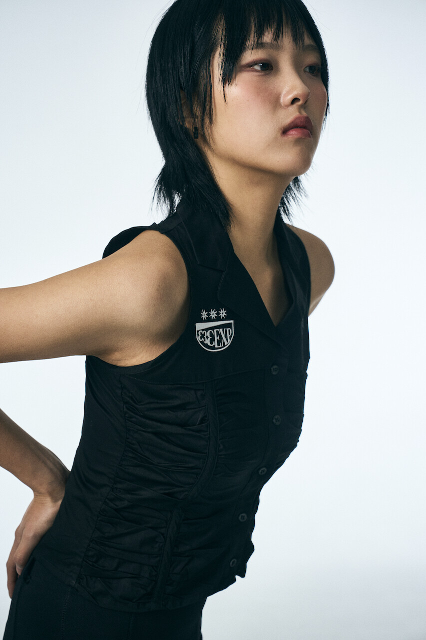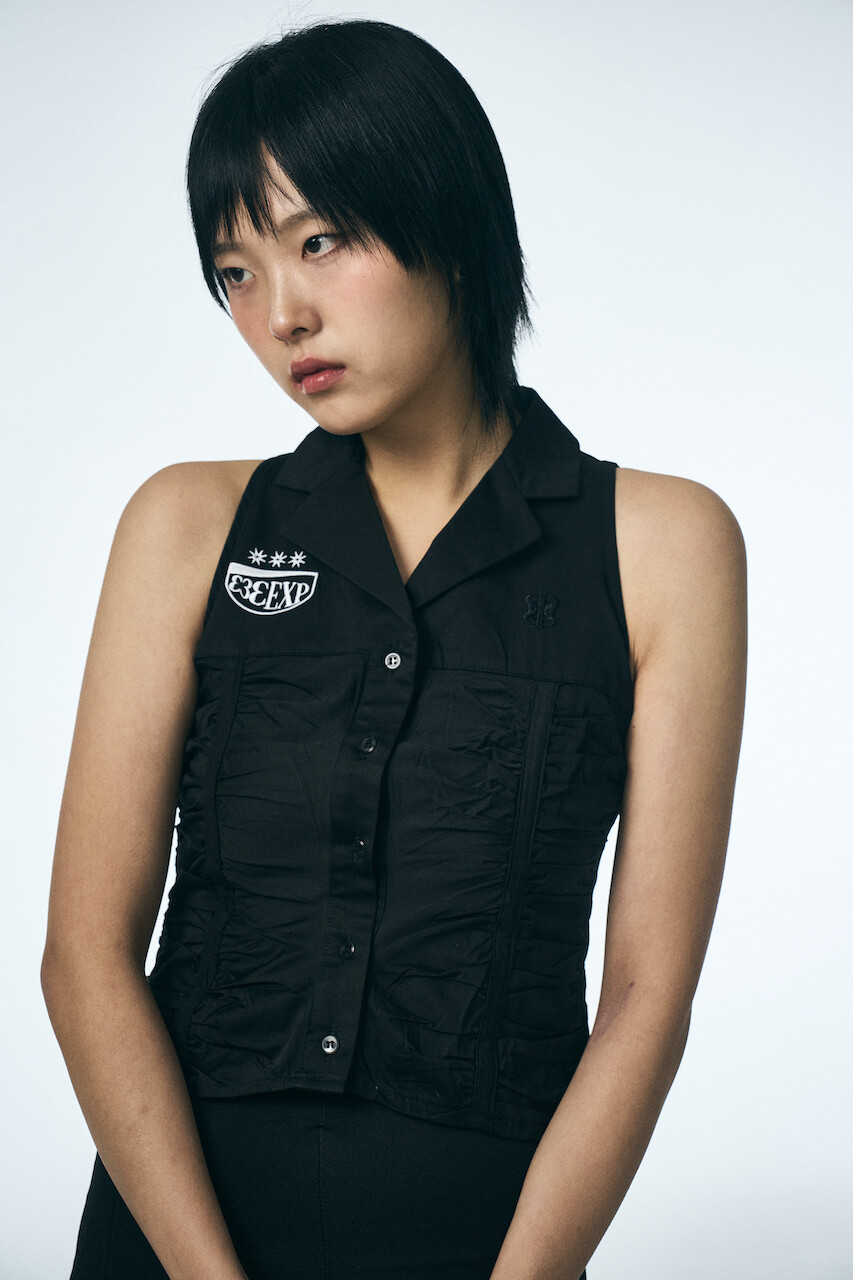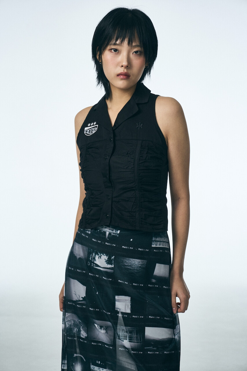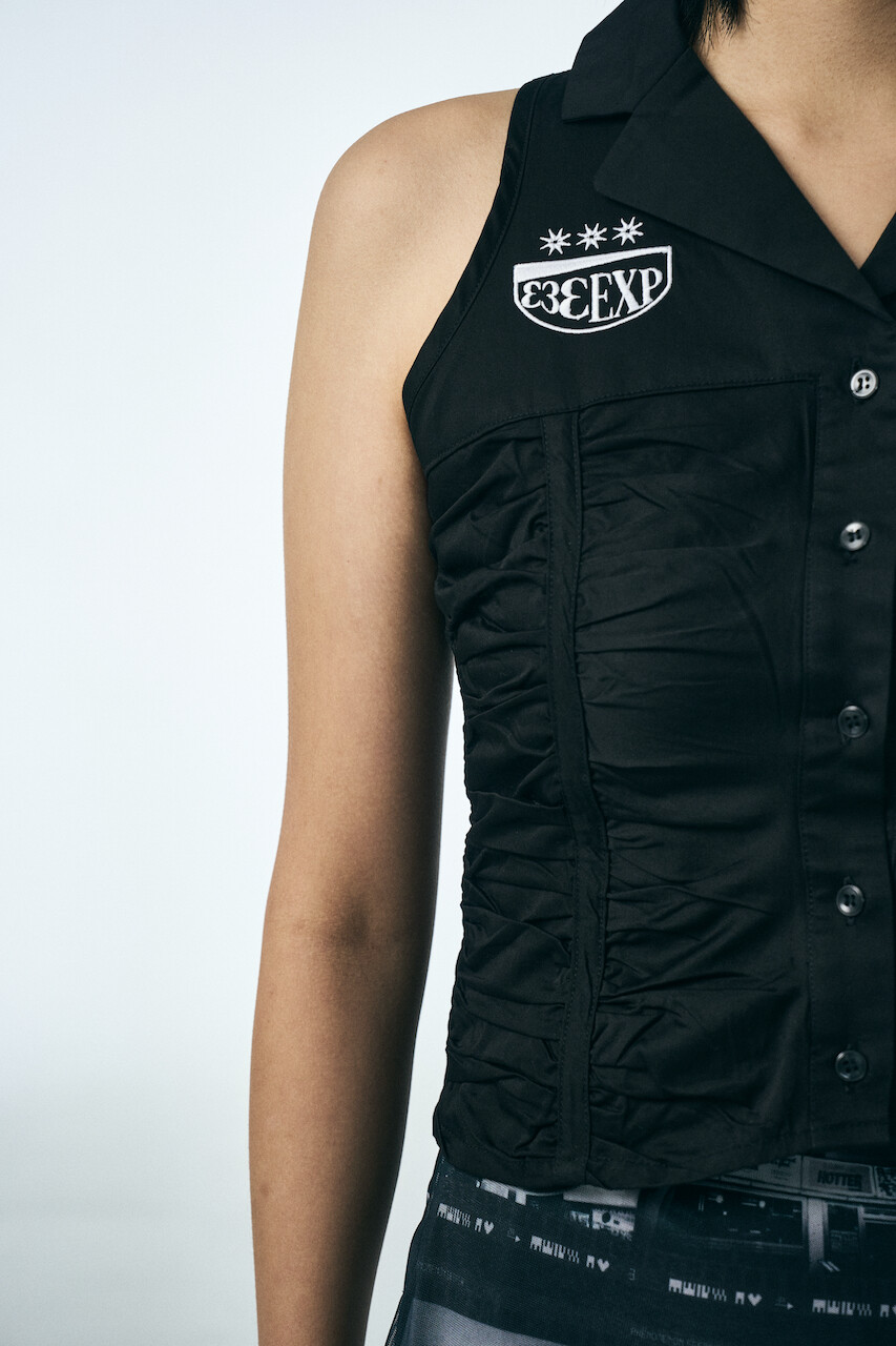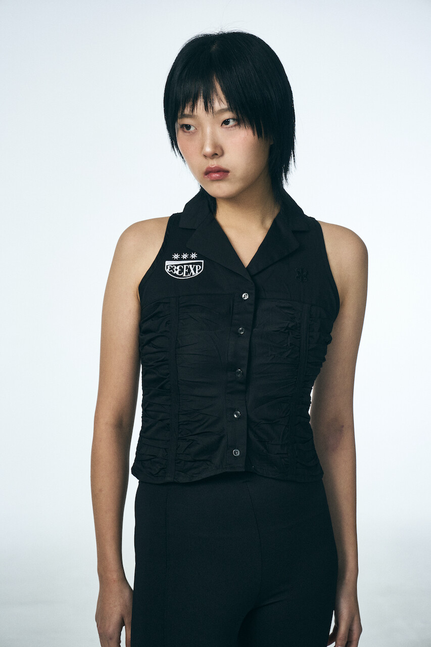333 SHIRRING SLEEVELESS SHIRT_BK