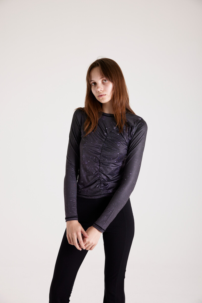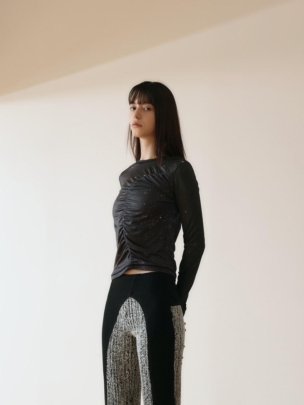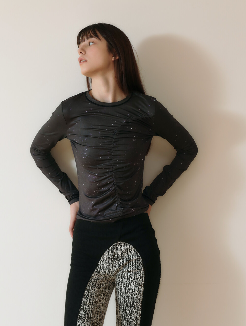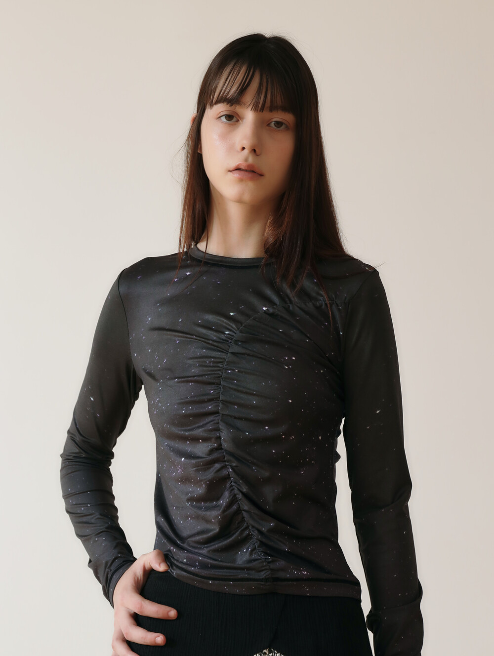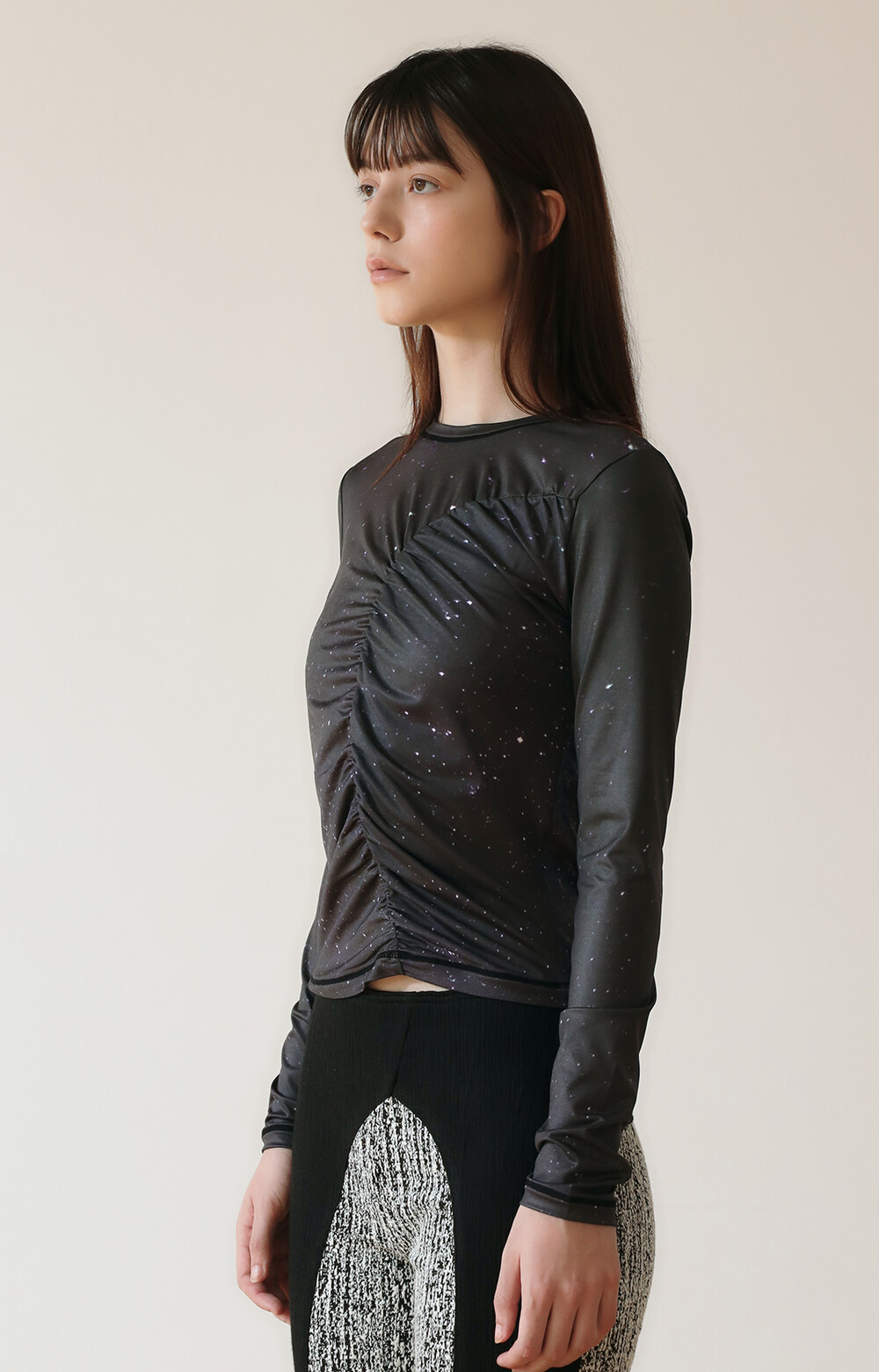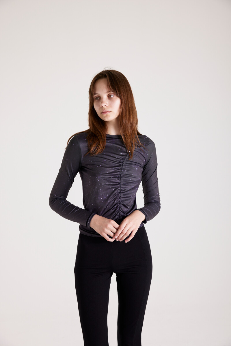 PRINT LONG SLEEVE SHIRRING T-SHIRT_[STAR]