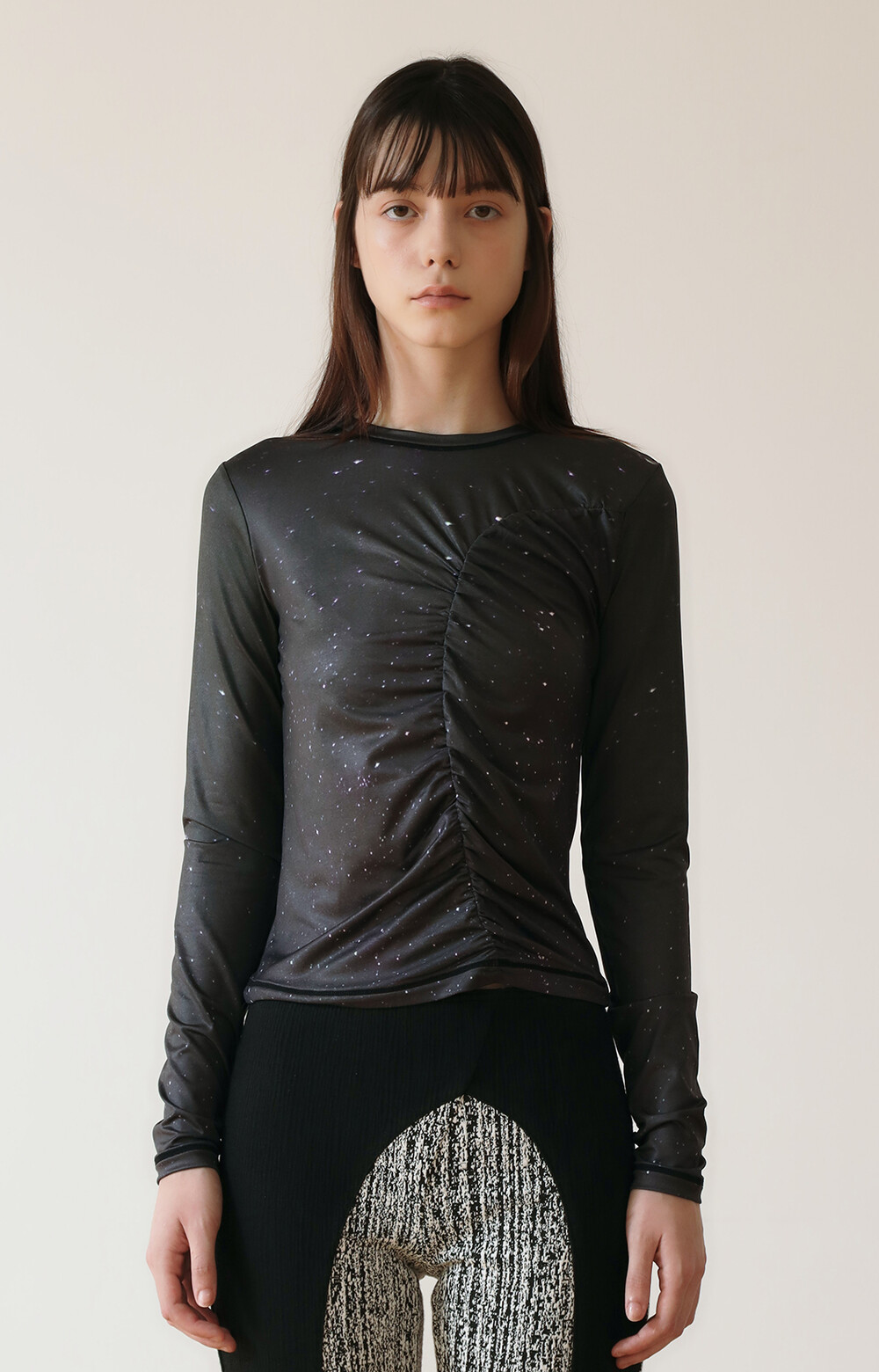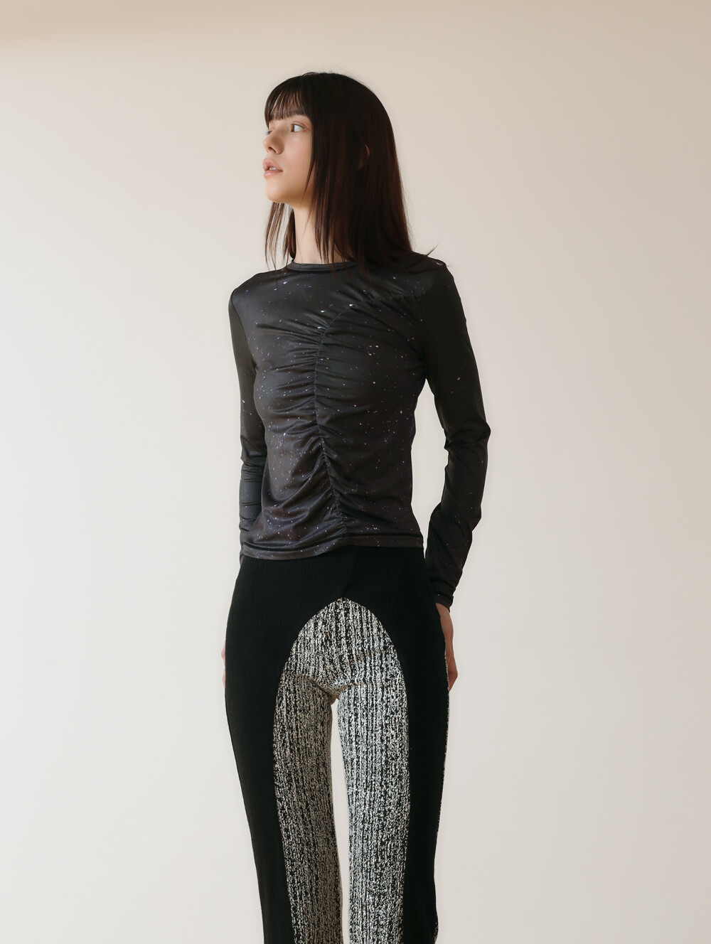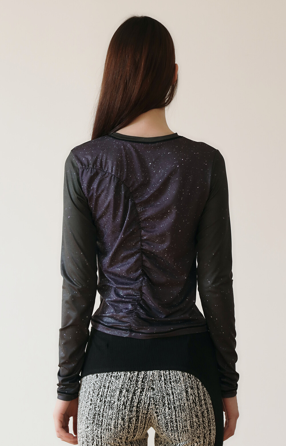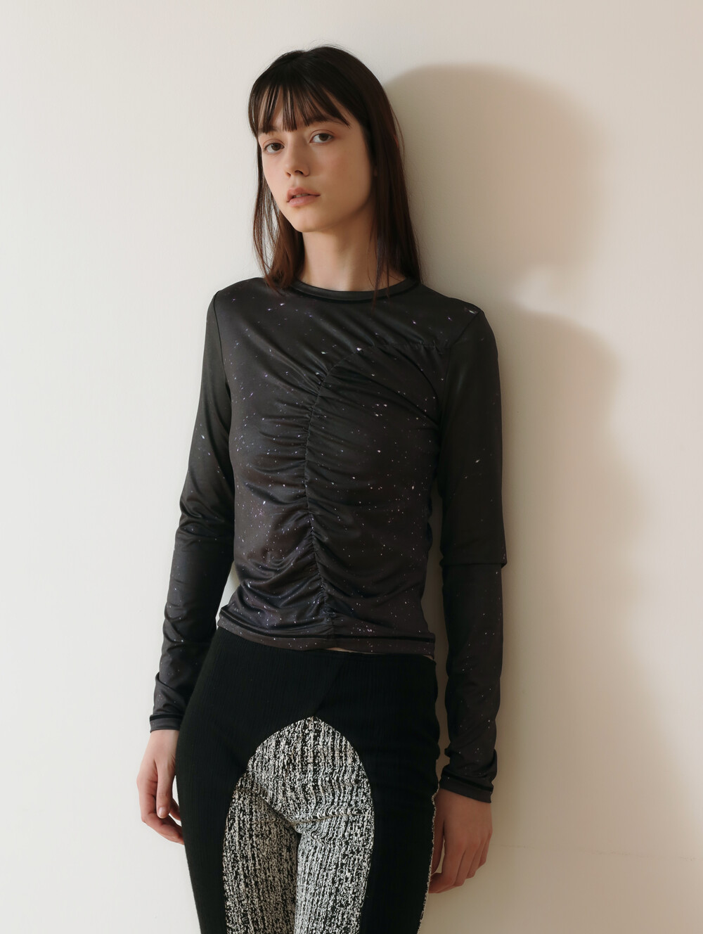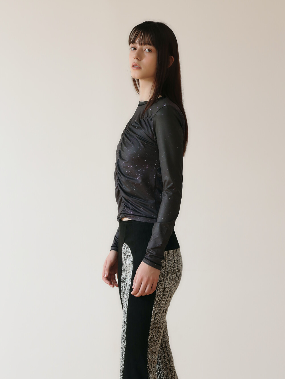 PRINT LONG SLEEVE SHIRRING T-SHIRT_[STAR]