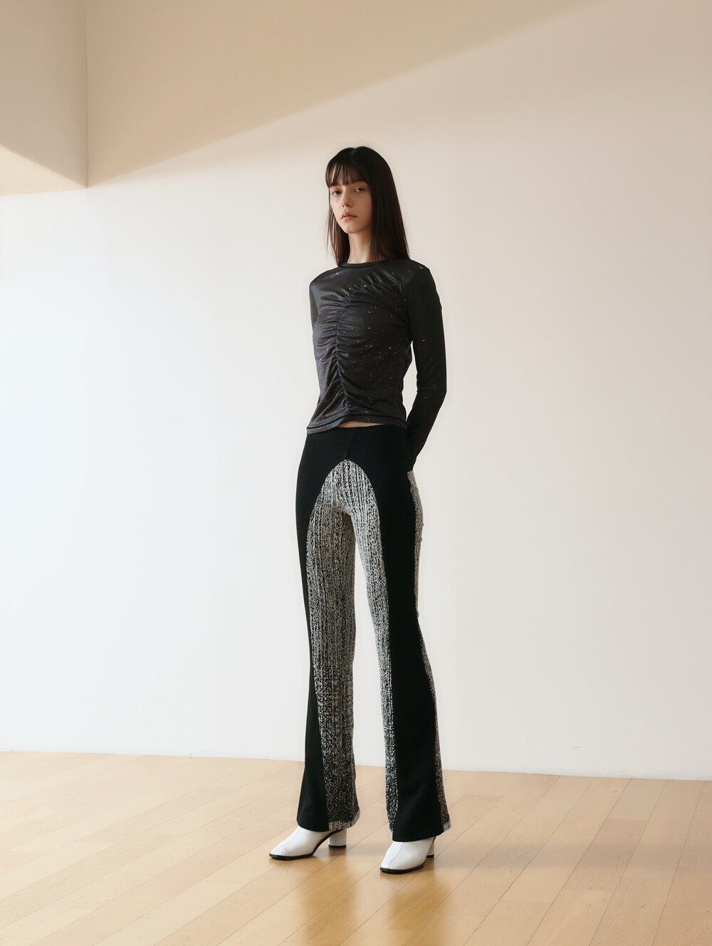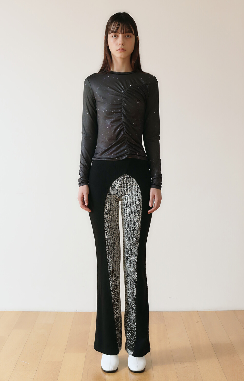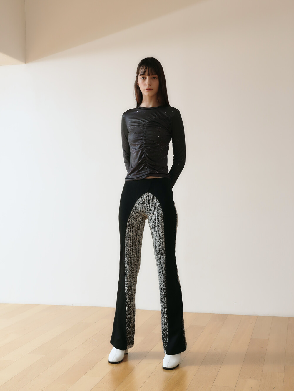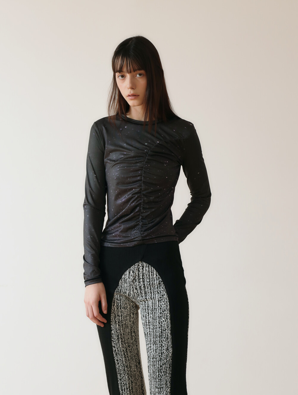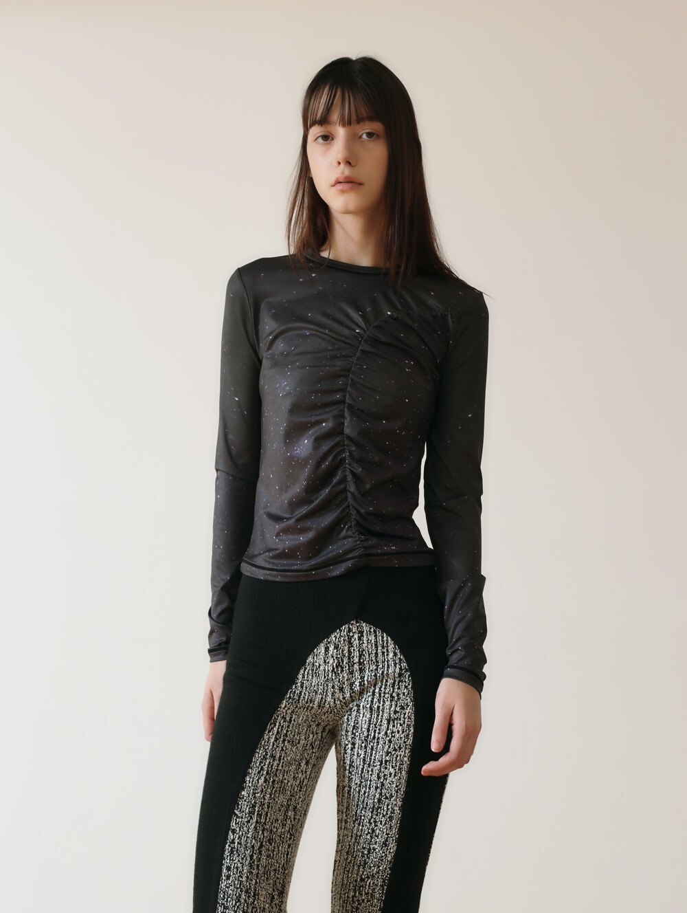 PRINT LONG SLEEVE SHIRRING T-SHIRT_[STAR]
