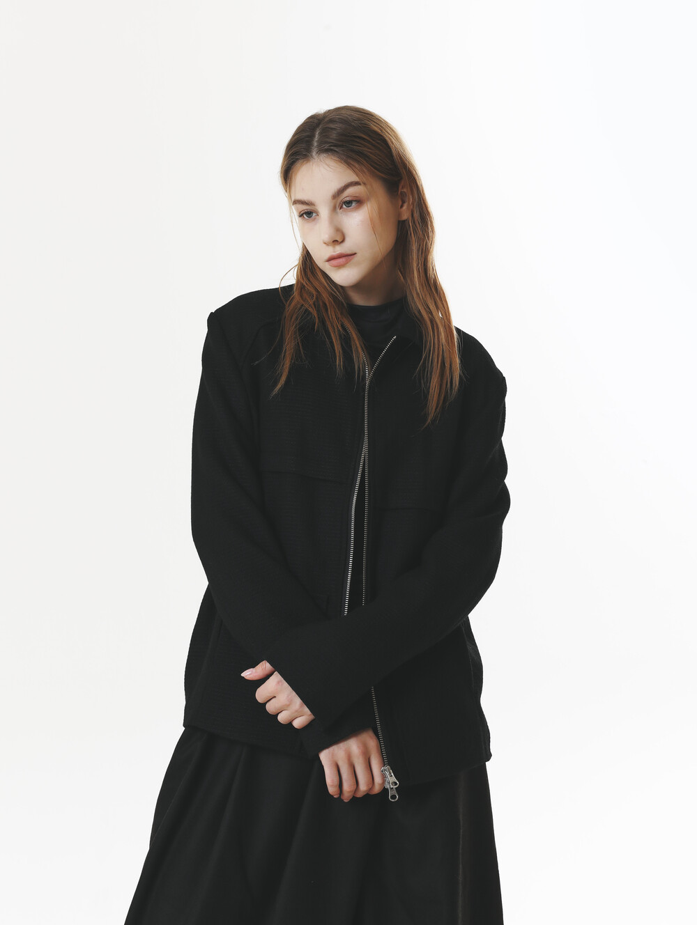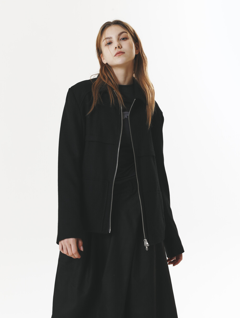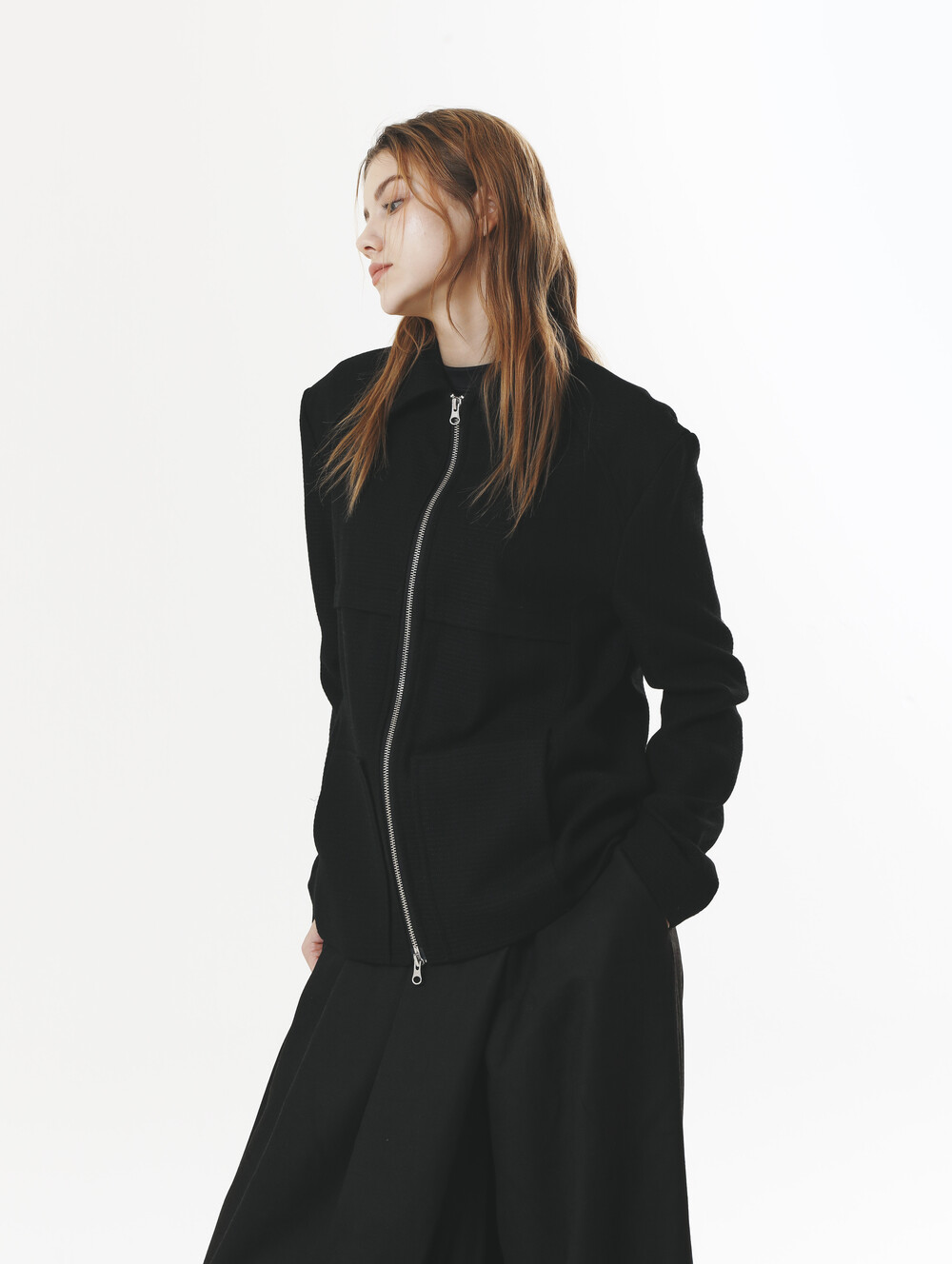 짜임이 돋보이는 소모직 울점퍼입니다. 스탠다드하게 떨어지는 실루엣으로 미드 아우터로도 활용하기 좋습니다.
