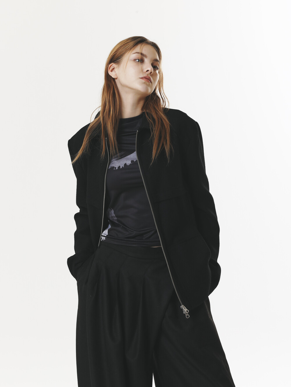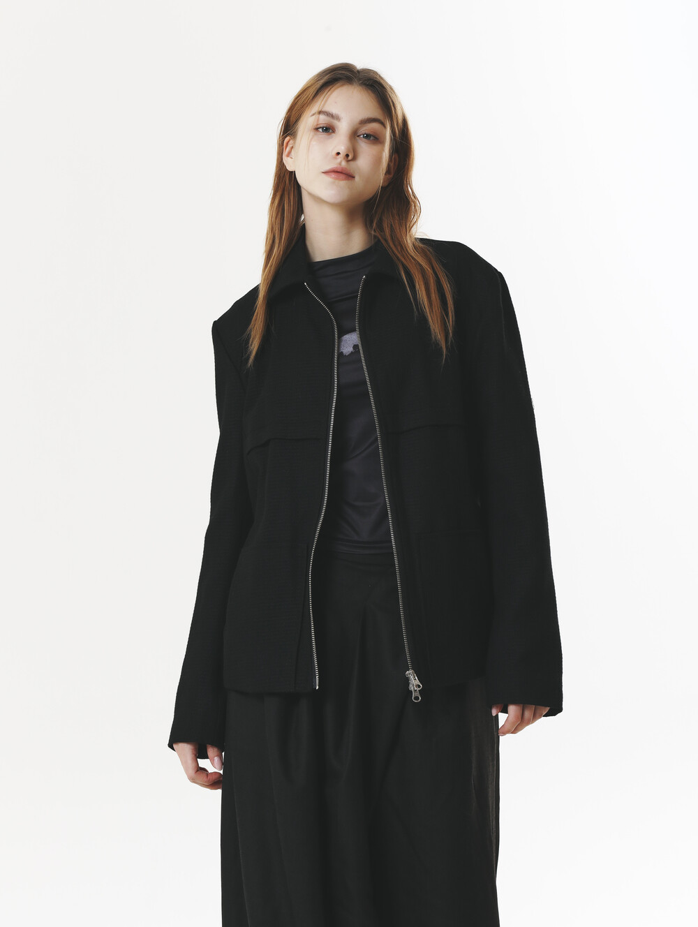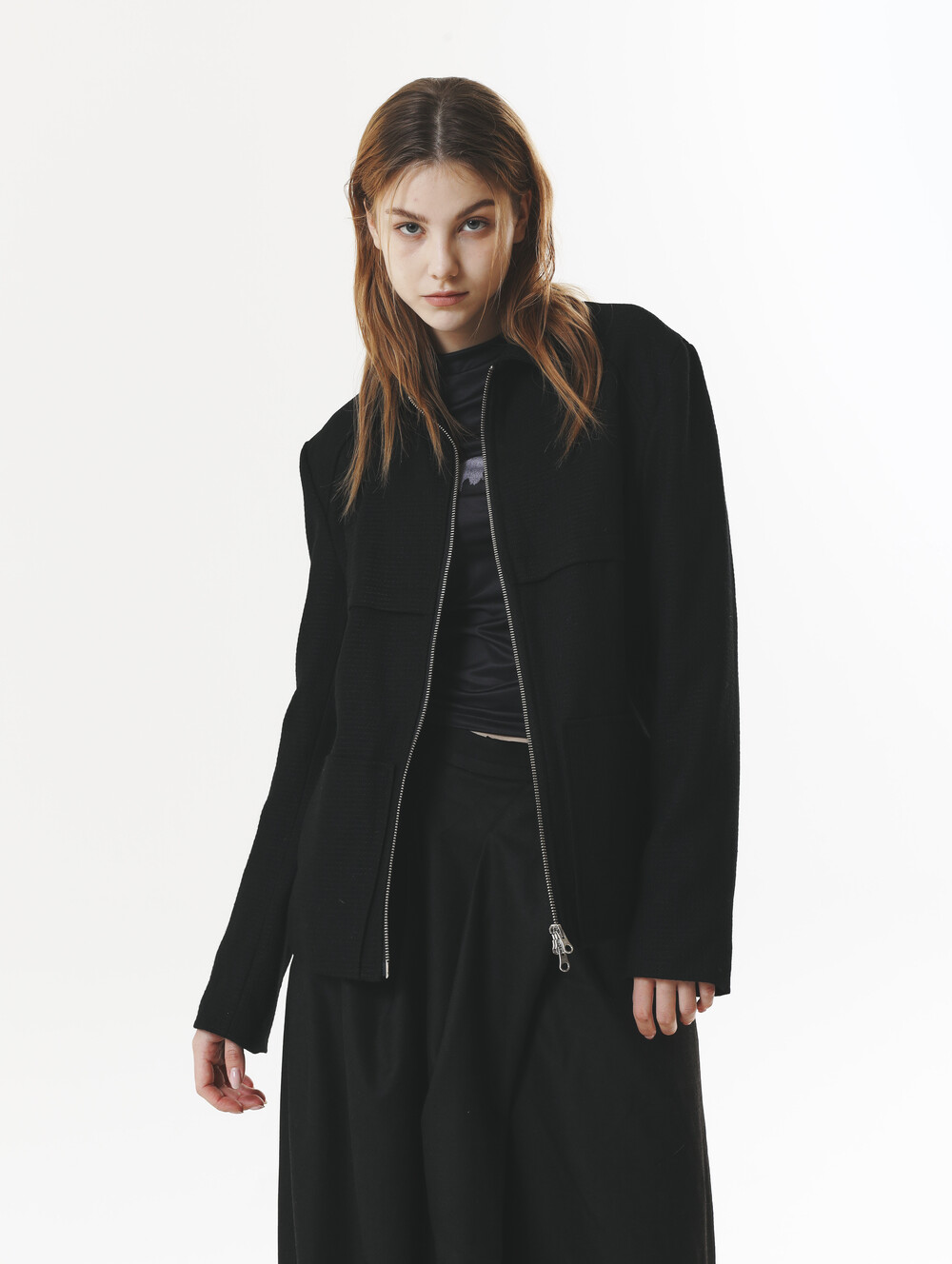 짜임이 돋보이는 소모직 울점퍼입니다. 스탠다드하게 떨어지는 실루엣으로 미드 아우터로도 활용하기 좋습니다.
