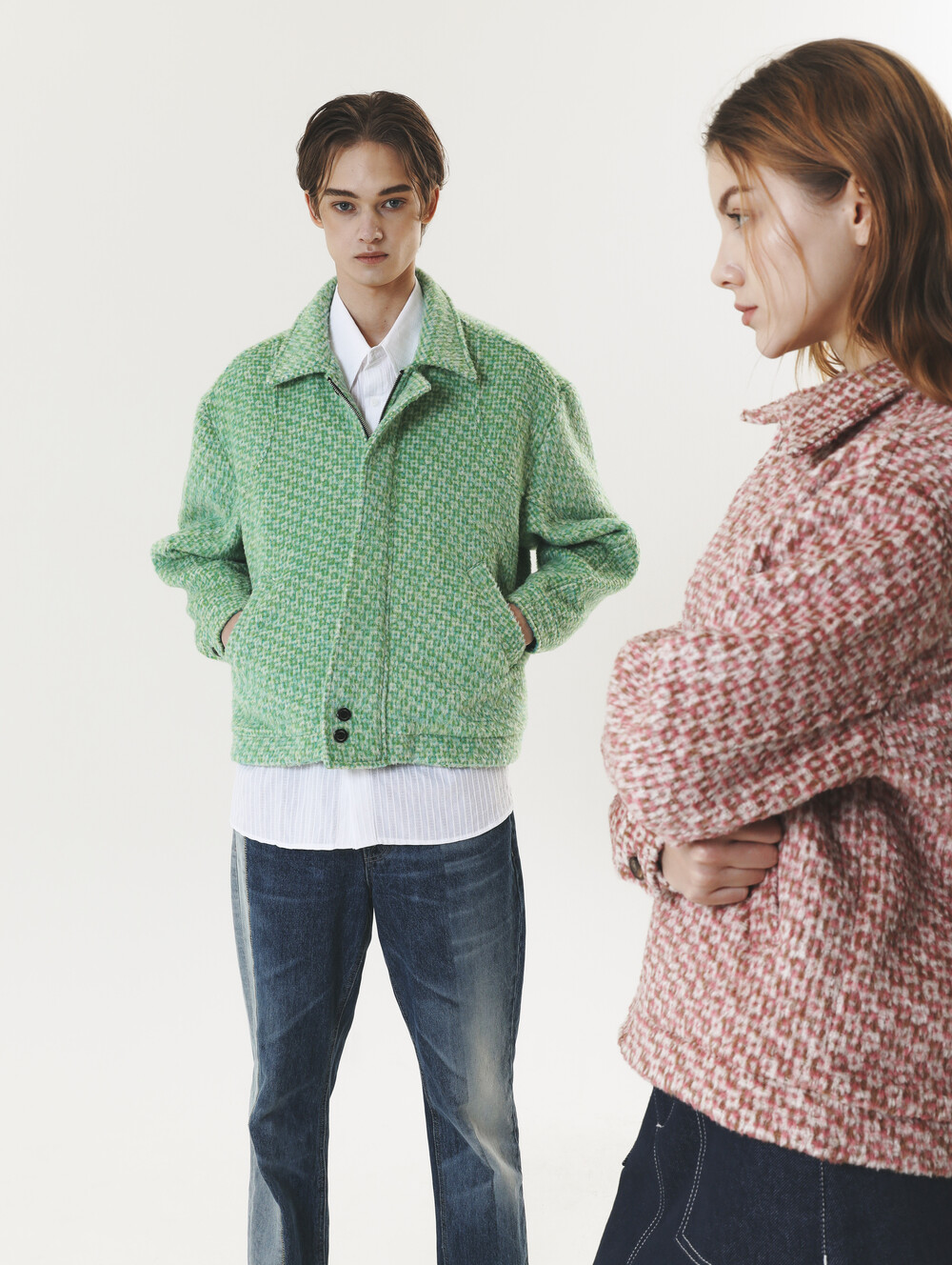 울&알파카 혼방 점퍼입니다. 이번 시즌 테마가 떠오르는 체크 패턴이 돋보입니다.